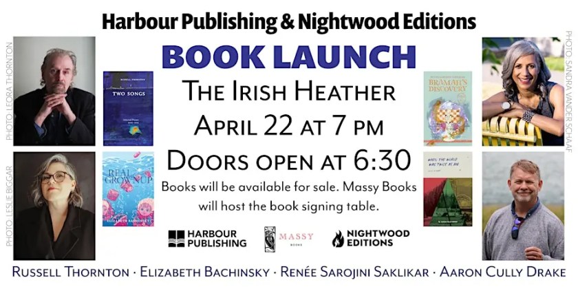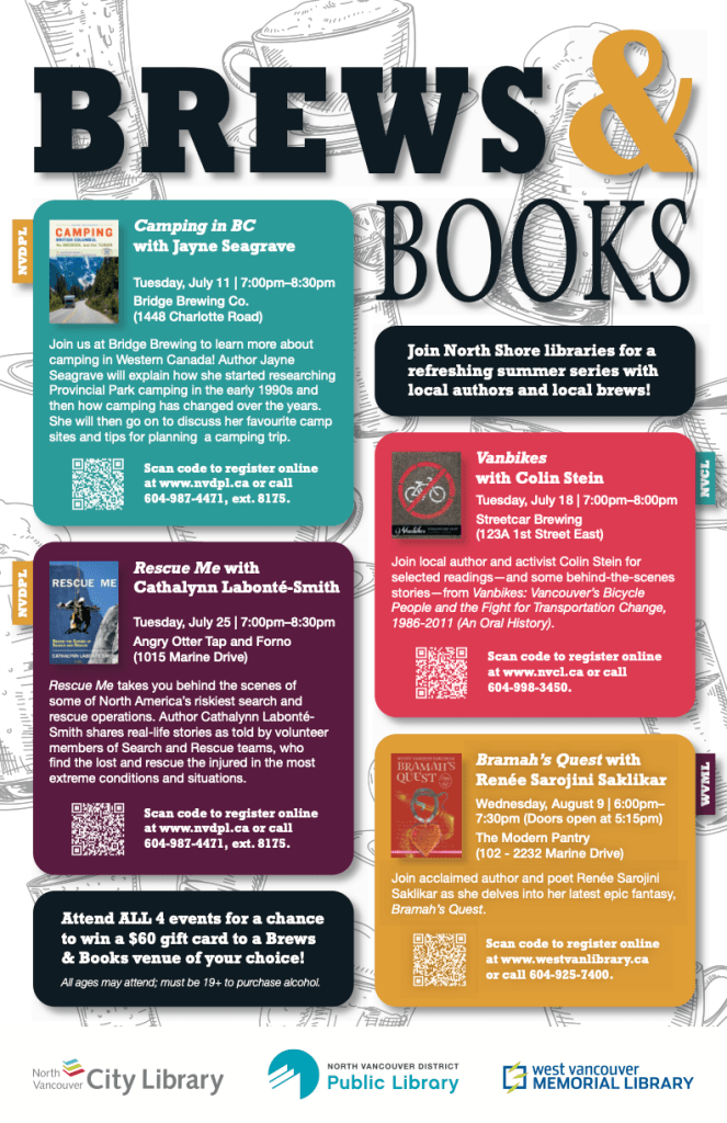 The event will feature readings and reflections from Claudia Cornwall, Renee Sarojini Saklikar, and Frances Peck (authors whose work speaks directly to BC fires), as well as chances to share together, and prizes for those who donate. Come join us for this extraordinary collaborative event as we affirm the power of words to help, to heal, and to connect with each other. Find out more, join us in person at the festival or donate on our website.”